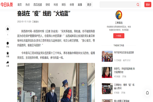 西咸消防支队战“疫”一线故事备受关注