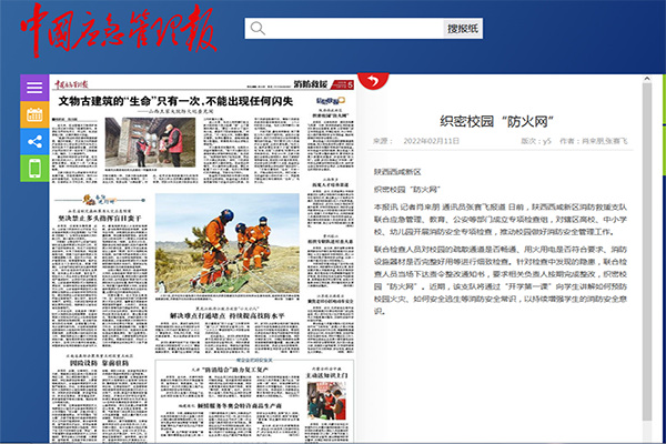 中国应急管理报报道西咸新区织密校园“防火网”