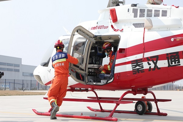 西咸消防支队对标“全灾种、大应急”职能定位,全面发挥空中指挥、火灾扑救、应急救援以及执行大型活动空中应急备勤保障等任务,与陕西秦汉通用航空有限公司达成购买贝尔412中型直升机和贝尔407医疗构型直升机两种机型服务,选派8人进驻陕西秦汉通用航空有限公司开展直升机救援训练。