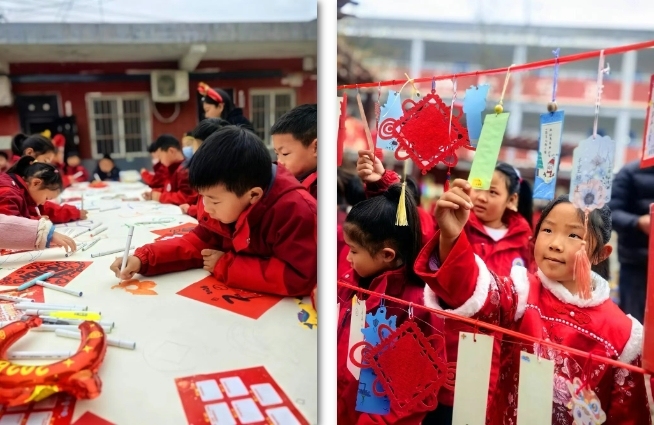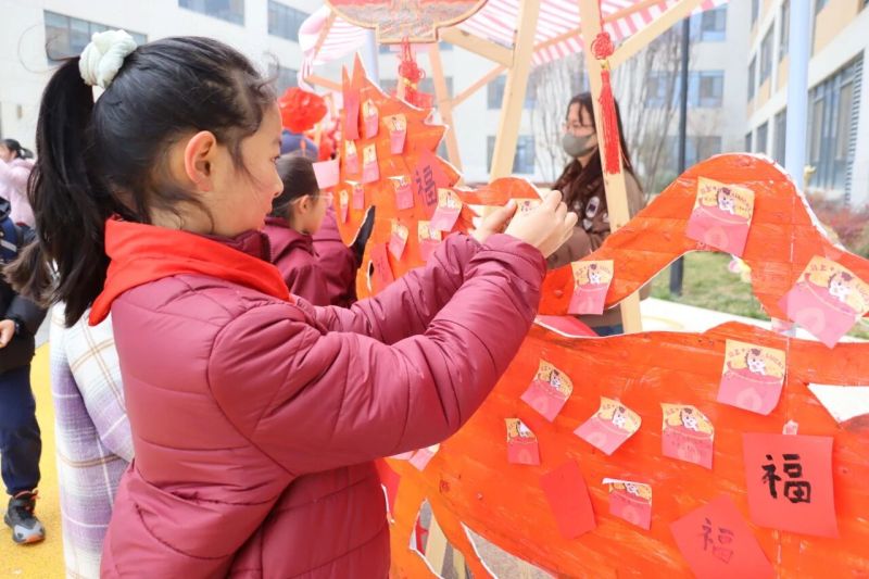 在沣东新城第七学校,开学迎新融入了传统民俗元素。学生们挂起灯笼,点亮对新学期的期盼;课间,同学们围在灯谜前,驻足思索,你一言我一语地抢答;投壶游戏区,大家凝神瞄准,体验古人的雅趣;还有的同学拓印福字,在心愿卡片上写下自己的小目标。一名现场主持活动的老师介绍:“我们尝试将传统文化作为开学礼,让孩子们在动手参与中感受文化,带着期待开始新学期。”