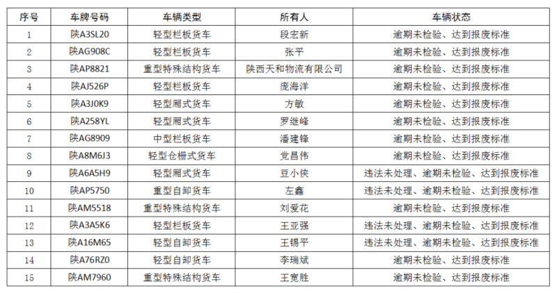 关于西咸新区15辆老旧机动车牌证公告作废的通报