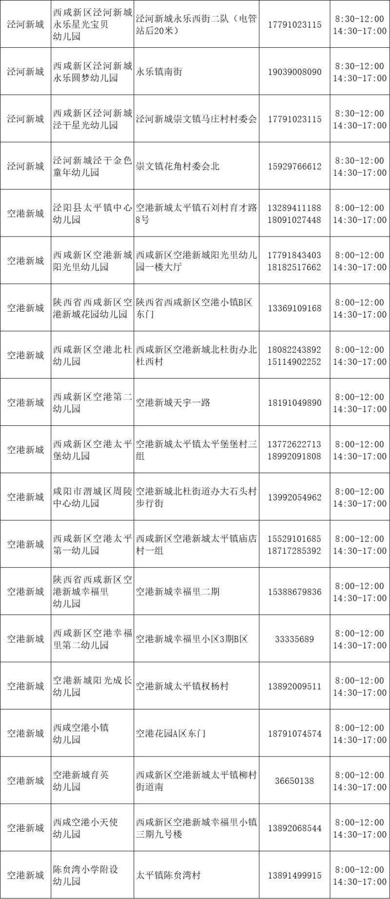 西咸新区2024年秋季幼儿园招生咨询信息一览表