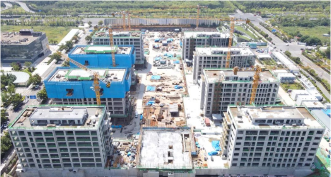 “项目分为南区和北区两个部分。目前北区正处于主体结构和外立面施工阶段,在前期4栋建筑单体封顶的基础上,最近又有6#、8#、10#和12#配套公寓楼顺利封顶。”奥卡广场项目负责人表示。