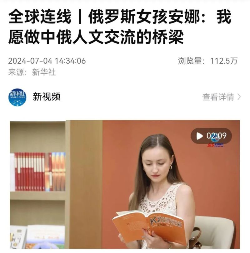 7月4日,新华社刊发文章《全球连线|俄罗斯女孩安娜:我愿做中俄人文交流的桥梁》,关注报道了俄罗斯女孩安娜在西咸新区秦汉新城创业的故事。截至目前,该报道浏览量已突破110万。