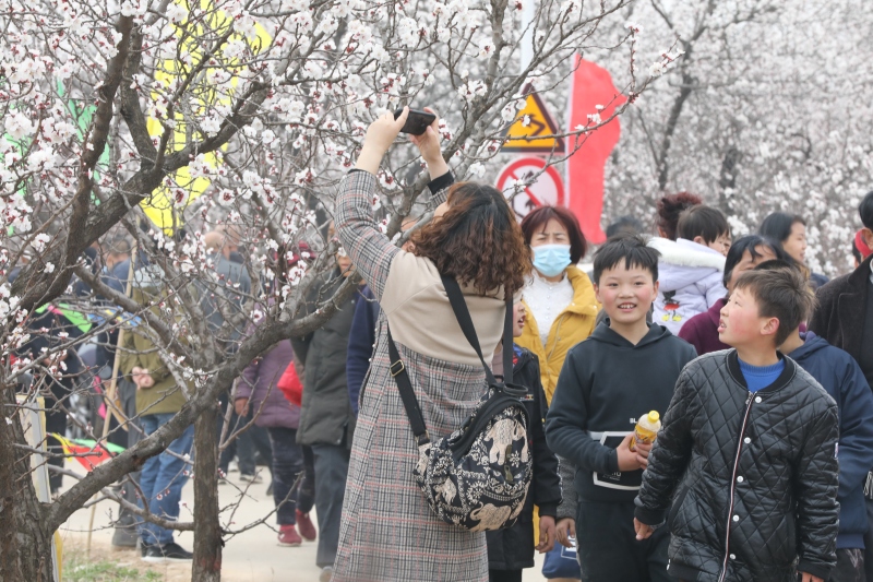 春风吹拂下,太平的杏花绯云般如纱似雾,馥郁馨香,释放出傲人的朝气与热烈,美如仙境。开幕式后,来到杏花节的游客们,纷纷驻足,拿出手机或相机,争先拍照记录下这唯美景色,打卡空港“杏花节”。