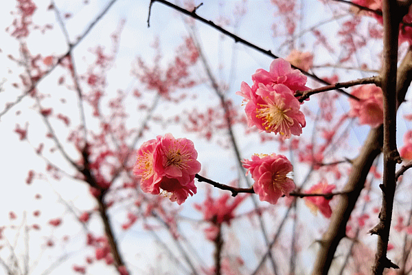 如果此时你来沣东赏花,一定记得打卡沣东梅园,此时的梅园,20余种梅花次第开放,傲然迎春,从饱满的花苞到盛放的风华,红的、白的、粉的,争奇斗艳,暗香四溢,放眼望去美得如梦如幻。