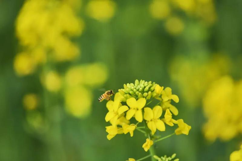 春风掠过,花香扑鼻,在这田园的花浪中满眼金黄,蜂蝶飞舞。