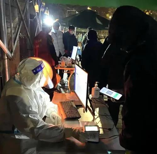 “从下午3点一直到凌晨,双脚早已经冻麻了,但是前来采集核酸的群众十分配合,还有人为我们竖起大拇指,道一句谢谢,辛苦了!虽然天气很冷,但心里暖和。” 来自沣东物业集团的志愿者说道。