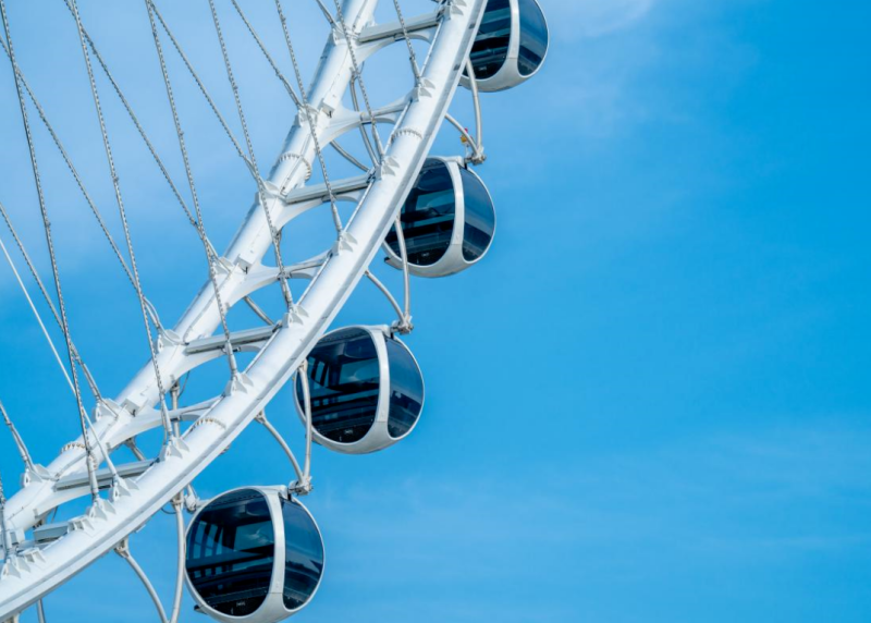 52个科幻球体摩天轮太空舱,暗藏着数字密码“520”,排布均匀,简洁大气。考虑到白天的隔热、防紫外线和夜晚的透光等情况,太空舱四周环绕的“玻璃”采用5毫米优质PC板,让视野更加开阔,舱内配备有冷暖空调、蓝牙音箱等设施,让游客在游览过程中拥有绝佳体验。