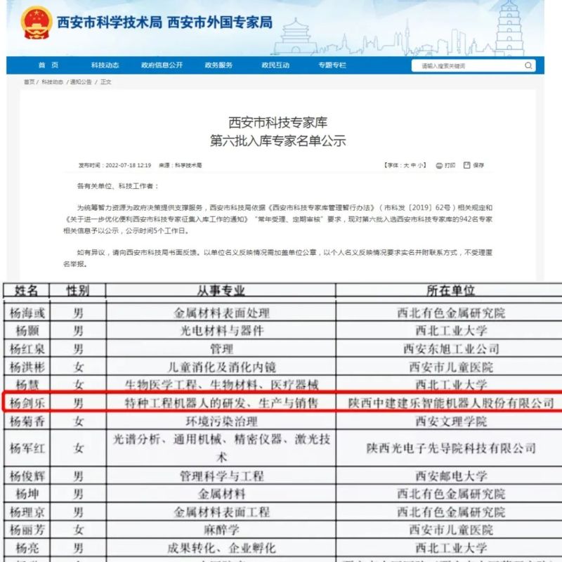 近日,西安市科学技术局、西安市外国专家局官网公布了“西安市科技专家库第六批入库专家名单”。西咸新区秦汉新城入驻企业陕西中建建乐智能机器人股份有限公司CEO杨剑乐成功入选!