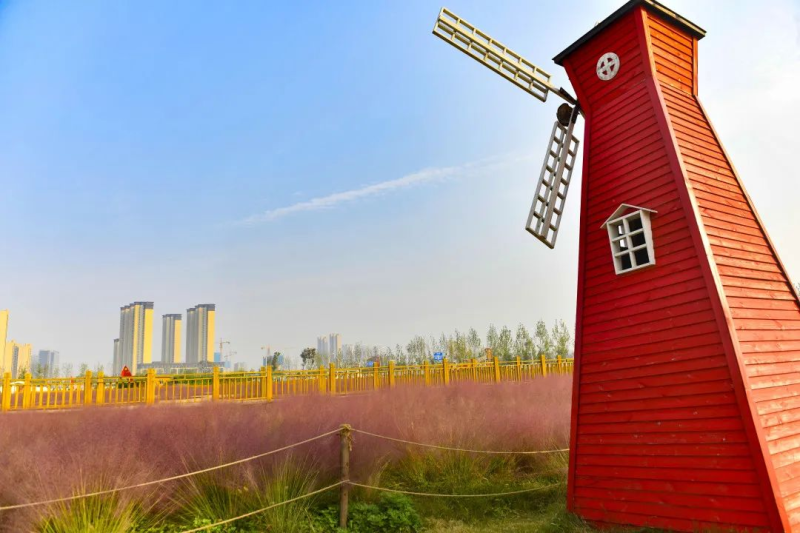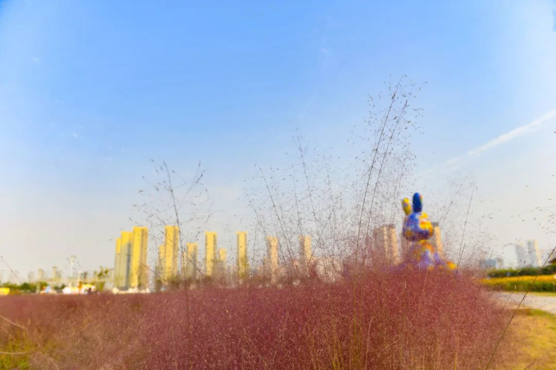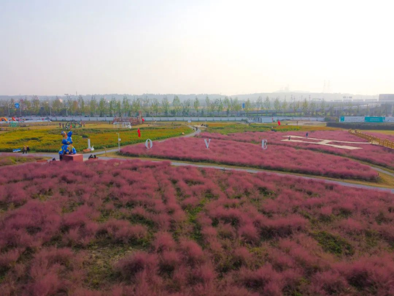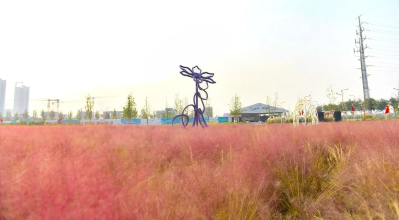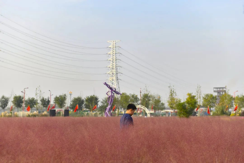 泾河花海连片的粉黛乱子草,红粉菲菲,亭亭玉立。远观犹如粉红色田野,细看更像细碎的麦穗。