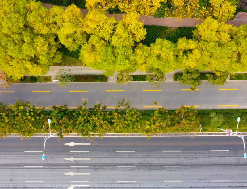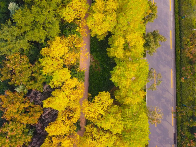 突发奇想,换个角度看看泾河。金色的银杏和青灰的公路相映成趣,宛如一幅写实油画,勾勒出泾河的轮廓。航拍的壮观视角下,不禁赞叹:一年好个秋!
