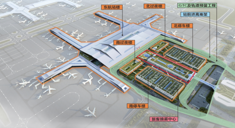 其中,GTC及轨道预留工程总投资51亿元,占地135亩,总建筑面积38万平方米,主要建设集空、铁、公、轨为一体的综合交通枢纽,是西北最大的陆侧交通枢纽建筑。