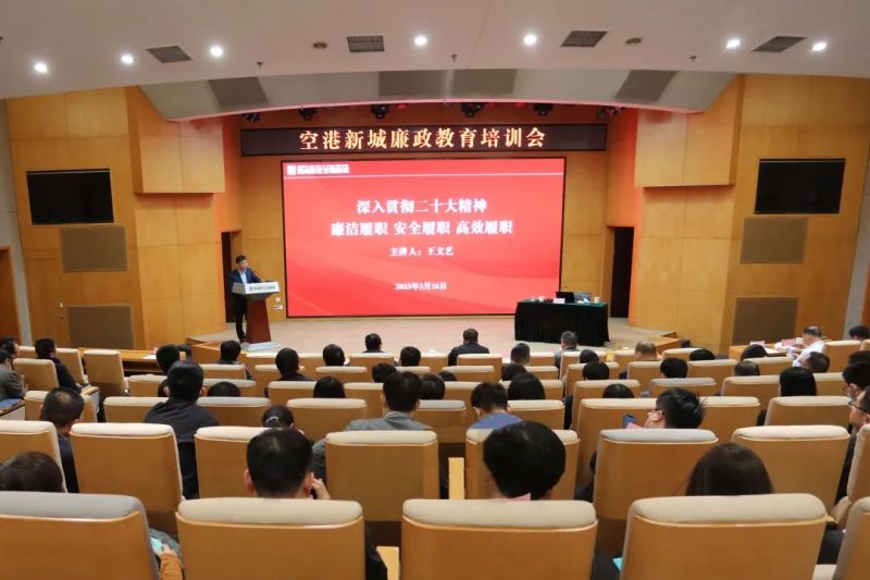 为深入推进全面从严治党,强化党员干部廉政教育,3月16日,空港新城结合全省“三个年”活动工作部署,举办2023年廉政教育培训会,筑牢新城廉洁自律思想防线。空港新城党委、管委会、空港集团、城发集团领导刘军、刘斌、倪忠明、张绍春、邵建辉参加。