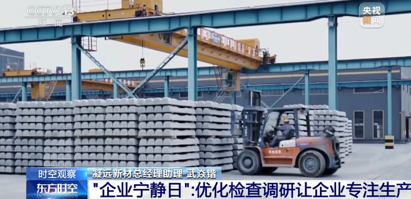 凝远新材总经理助理武焱锴说:“因为企业会涉及安全生产、环境保护等多方面的工作,相关部门对企业有检查的要求,但是各级政府主管部门会有一些检查的重叠,‘宁静日’政策推出后,很多执法和检查就会合并进行,这样企业就能专心投入到生产经营中。”