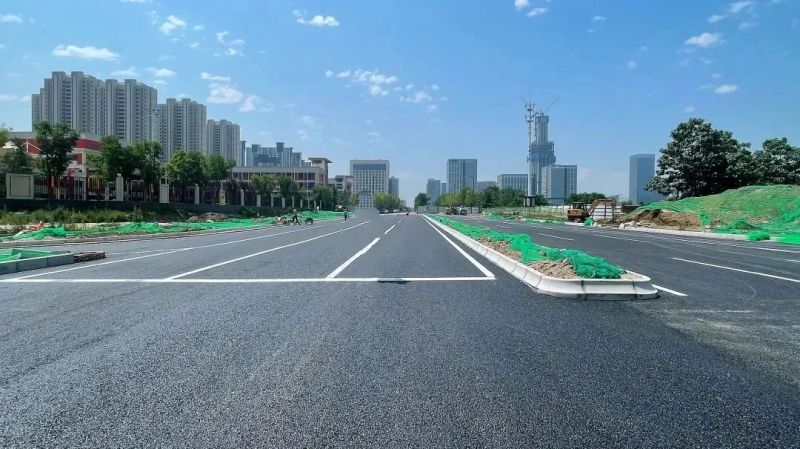 沣东三路配套路段西起复兴大道,东至科源一路,双向6车道。主车道结构层施工铺设已完成,目前已满足通车要求,现阶段正在组织路灯、道路标识标牌及道路绿化等工程进场施工。