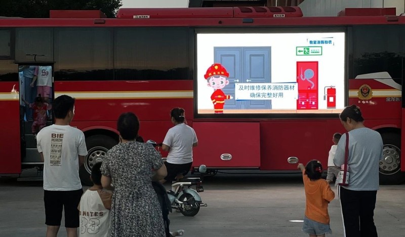 活动期间,宣传员秉持宣传教育“贴近实际、贴近生活、贴近群众”的原则,扩大消防宣传覆盖面。针对夜间消夏人群集中的特点,深入广场人员密集场所,向过往群众发放《社区消防》《家庭防火自救常识》《消防法规知识手册》等各类资料。同时,利用消防宣传车循环播放各类消防宣传公益广告、消防安全知识短片,邀请群众参观和体验了大篷车里的消防设施器材,为在场群众讲解消防器材以及如何发现和消除身边的火灾隐患、家庭火灾如何自救、火场逃生自救等消防知识,并提醒居民提高消防安全意识,注意暑期防溺水安全教育。