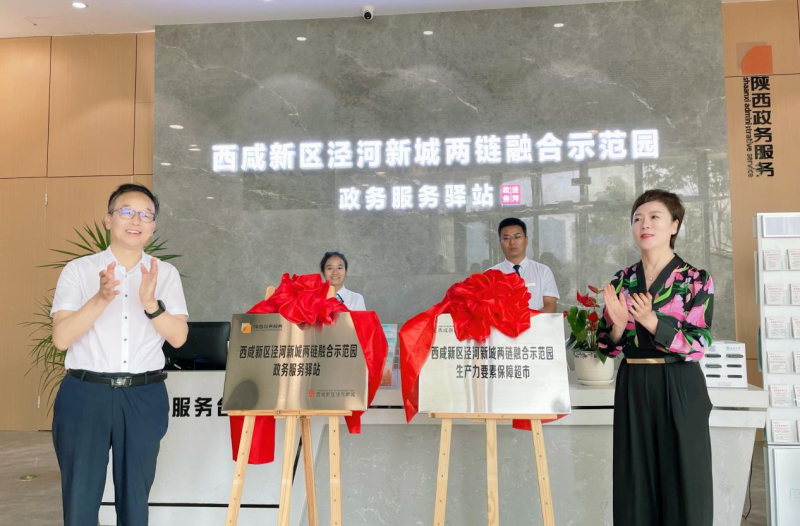9月5日,泾河新城两链融合示范园政务服务驿站暨生产力要素保障超市正式揭牌运行。西咸新区管委会副主任任建民,泾河新城党委副书记任炳群出席仪式。