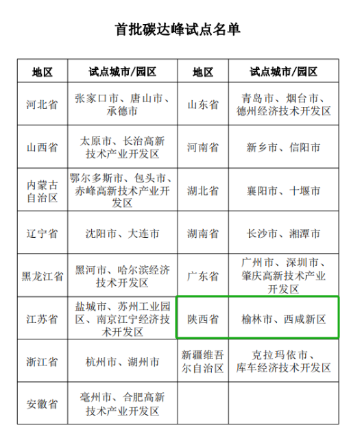 近日,国家发展改革委公布了首批35个碳达峰试点城市和园区,西咸新区成功入选。
