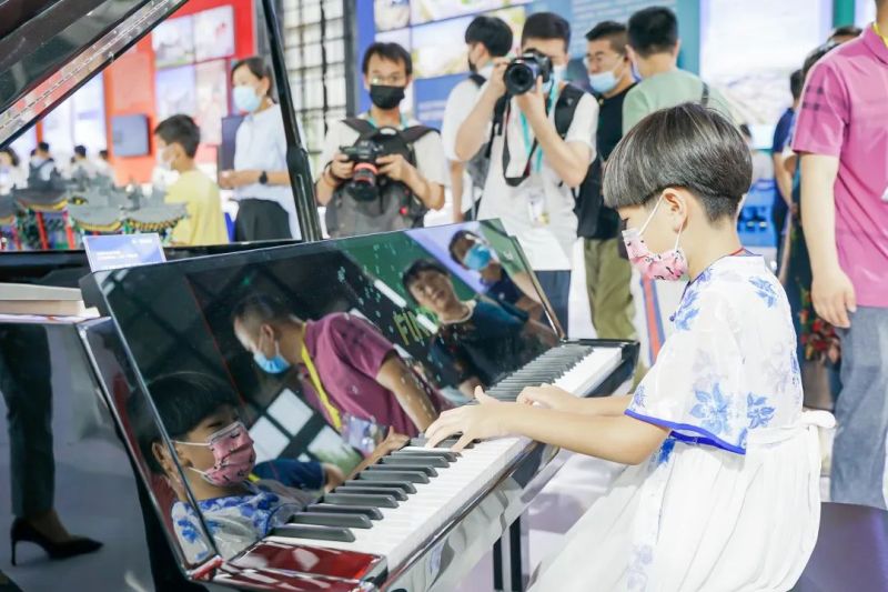 一阵悠扬的钢琴声飘扬在西咸展区上空,显得格外动听。这是落户西咸新区不久的泛德音乐推出的智慧钢琴,可以实现视频音频播放,音乐响起,钢琴按键自动弹奏,让没有任何基础的人也能根据视频和音频节奏学会弹奏。“未来我们将广泛与社区和养老机构以及学校合作,给孩子和老人免费使用,让更多的人便捷学钢琴。”